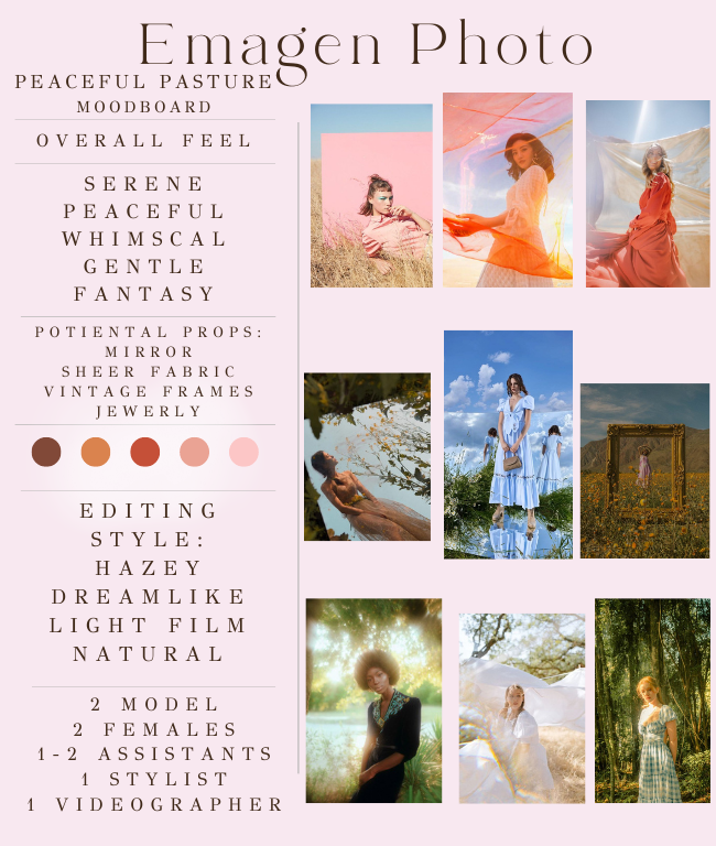 Peaceful Pasture was the name of the shoot corelating to the mood board on the left, with Haute City Jewelry as the client. The final Film Photographs are shown below, while these are the final digital photographs.